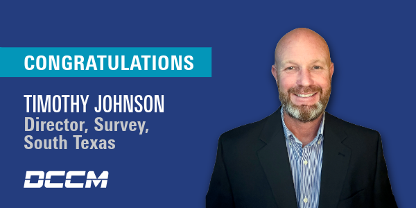 DCCM is proud to announce the promotion of Timothy Johnson from Survey Operations Manager to Director, Survey, South Texas.
