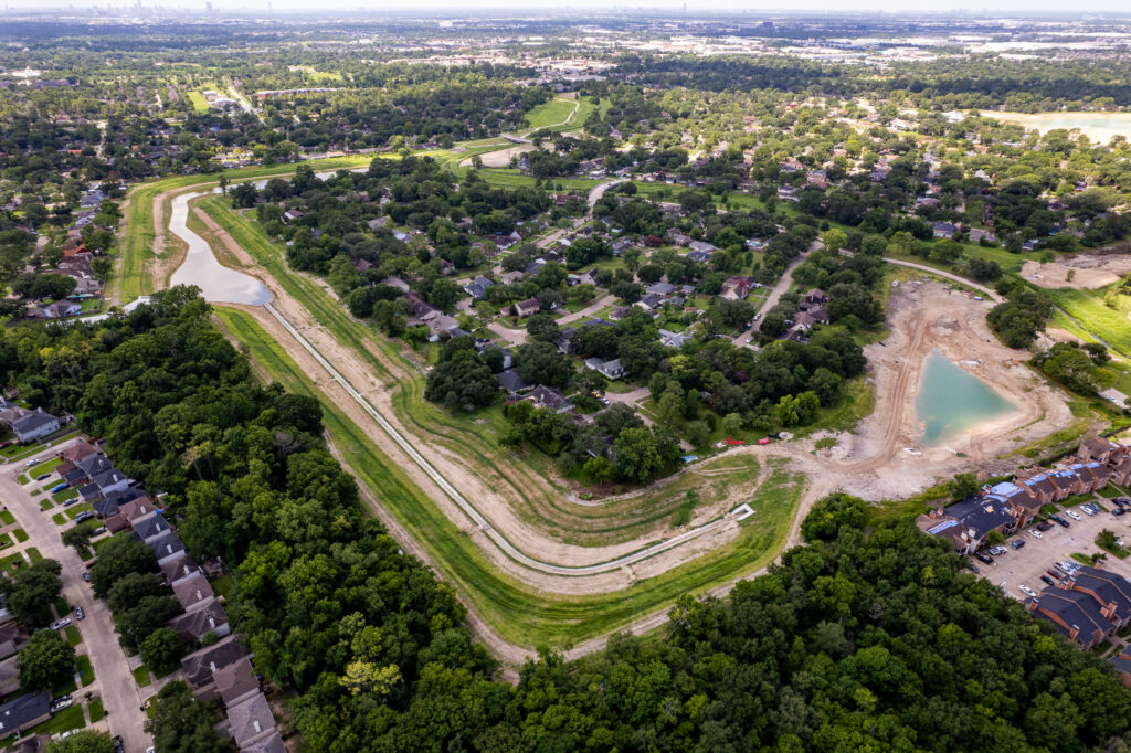 Inwood Forest Stormwater Detention Basin Houston, TX The project included the conversion of 226-acres of golf course fairways into regional detention basins through an interlocal agreement between Harris County Flood Control District and the City of Houston. This project represents the largest single-phase dirt moving effort in the Flood Control District’s 88-year history. It is transforming the site into 12 interconnected compartments, designed to mitigate impacts of future City of Houston local drainage improvements and help reduce flooding risks in a historically vulnerable part of the city. The project encompasses property located both east of Antoine and west of Antoine, with a total of 12 interconnected compartments. The project is currently in construction and will provide approximately 1200 acre-feet of storage to the White Oak Bayou Watershed. At a Glance 226 Acres $71 million Project Cost “This project represents a historic milestone for Harris County Flood Control District, both in scale and impact. Converting more than 226 acres into interconnected regional detention basins required close coordination between agencies, thoughtful phasing, and precise execution. Once completed, the system will significantly enhance flood resilience for the White Oak Bayou watershed and surrounding communities.” Mark Rotz, PE Project Manager Markets Land Development Services Land & Site Development